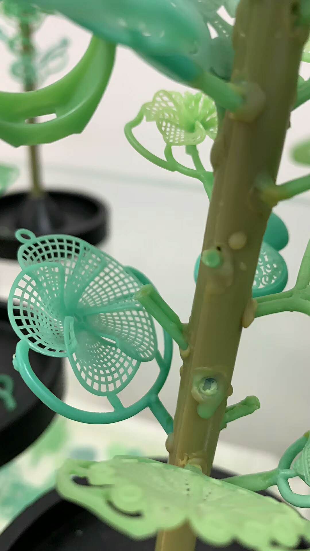 種蠟樹就是將制作好的蠟模按照一定的順序,用焊蠟器沿圓周方向依次分層地焊接在一根蠟棒上,使最終得到一棵形狀酷似大樹的蠟樹,再將蠟樹進行灌石膏等工序。種蠟樹的基本要求是,蠟模要排列有序,關鍵是蠟模之間不能接觸,既能夠保持一定的間隙,又能夠盡量多地將蠟模焊在蠟樹上,也就是說,一棵蠟樹上要盡量“種”上最多數量的蠟模,已滿足批量生產的需要。
