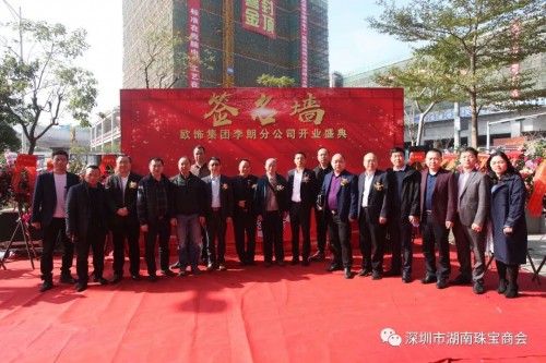 2019年1月18日,商會常務副會長單位,歐飾集團(深圳)公司隆重舉行李朗店開業儀式,我會會長、老鳳祥(兩廣)運營中心董事長譚敬華從上海發來賀信,原深圳市公安局警衛處處長曾德潤、廣東國際鉆石商會會長朱遠勇、李朗國際珠寶園總經理喻蘭,我會執行會長、張萬福珠寶創始人張躍財,黨支部書記、百年福牌董事長黃貴華,深圳廣福來珠寶董事長趙彬,我會常務副會長、金唯盛珠寶董事長粟四軍,常務副會長,恒亞珠寶董事長諶洪輝,副會長、王道人裝飾董事長王海豐,商會秘書長尹修華等領導嘉賓出席慶典儀式。